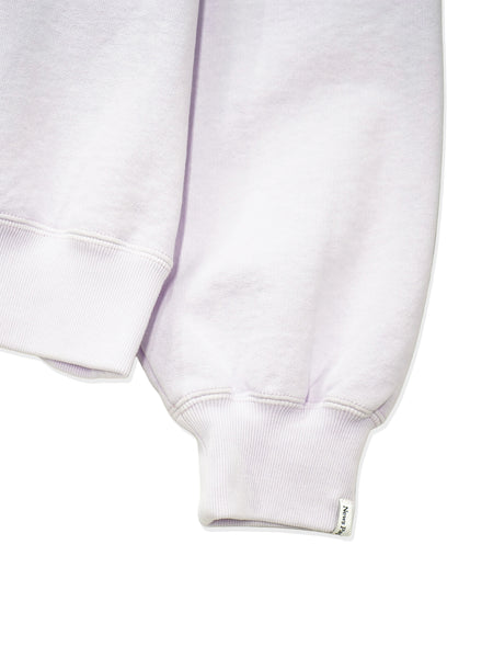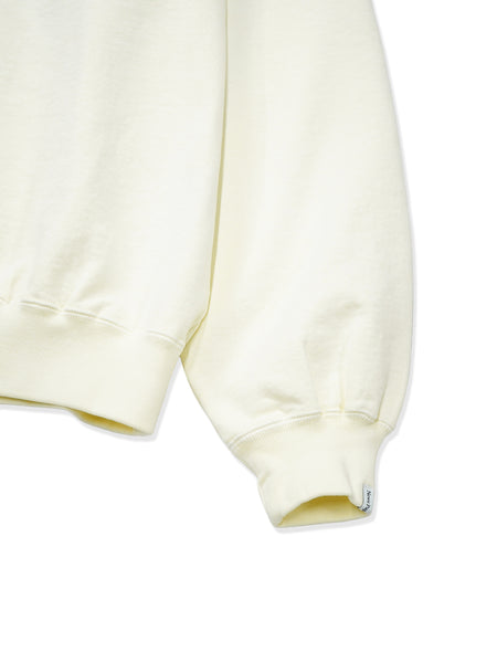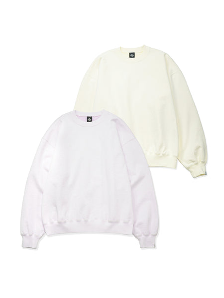 ドロップショルダーにゆとりのあるアームホールが特徴の裏毛クルーネックスウェット